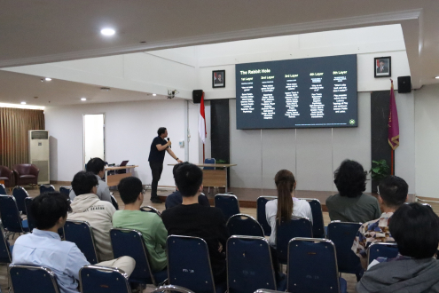 Peserta juga mempelajari kerangka kerja inti seperti MDA (Mechanics, Dynamics, Aesthetics), konsep flow state, serta tiga pilar desain: what players do, how systems react, dan how players feel. Metode “Play, Break, Redesign” diperkenalkan sebagai pendekatan praktis untuk menganalisis desain sebuah game, yaitu memainkannya, mengidentifikasi titik lemah, lalu merancang ulang elemen tersebut demi kejelasan dan keterlibatan yang lebih baik. Sesi kemudian dilanjutkan dengan tanya jawab yang interaktif, di mana mahasiswa berkesempatan mendiskusikan penerapan prinsip desain game dalam proyek akademik maupun pengembangan portofolio pribadi.